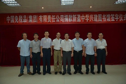 2012年7月27日,中免集团临高县新盈中学图书馆捐助仪式在临高县委会议室成功举行。临高县县委书记李江华,县委副书记、政法委书记曹文,县委常 委、常务副县长闫玉龙,县教育基金会会长符玉统,县教育局局长、县教育基金会秘书长谢吉红,县教育局副局长、县教育基金会理事许高逢出席了本次捐助活动。 中免集团党委书记兼副总裁陈建山,中免集团驻海南办事处主任鲁新建代表中免集团参加了本次捐助仪式,中免集团海南办事处负责本次活动在海南地区的后勤保障 工作。